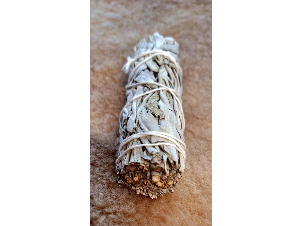 Šalvia biela je najposvätnejšia rastlina severoamerických indiánov, ktorý túto bylinu používali od dávnej doby pri obradoch, ako vydymovadlo na očistenie obydlia, predmetov pri zaháňaní zlých duchov a rôznych chorôb. Po stáročia je uznávanou rastlinnou učiteľkou. Jej používanie je obľúbené aj v dnešnej dobe a vyhľadávajú stále viac terapeutov a tích, ktorí usilujú o blaho tela, ducha a duše.Dym bielej šalvie má očistné a dezinfekčné účinky, čistí priestor, predmety aj ducha od negatívnych a cudzích energií. Takisto sa používa na odpudzovanie hmyzu. Bielej šalvii sa pripisujú rôzne terapeutické účinky…napr. liečba zápalu pľúc, bolesti hrdla, vysokých teplôt, zápalu kože. Hmotnosť 25-30g.