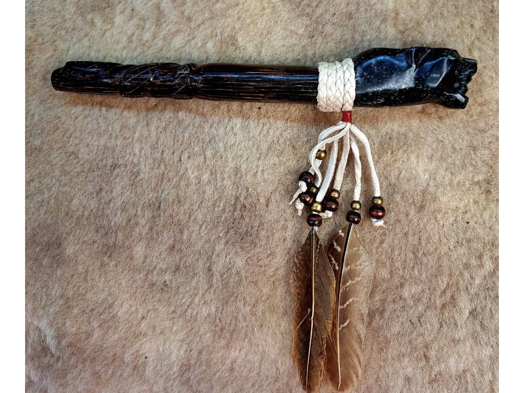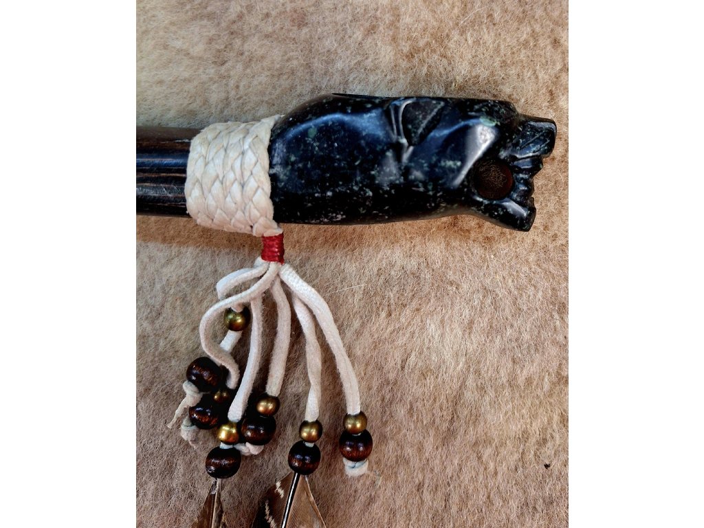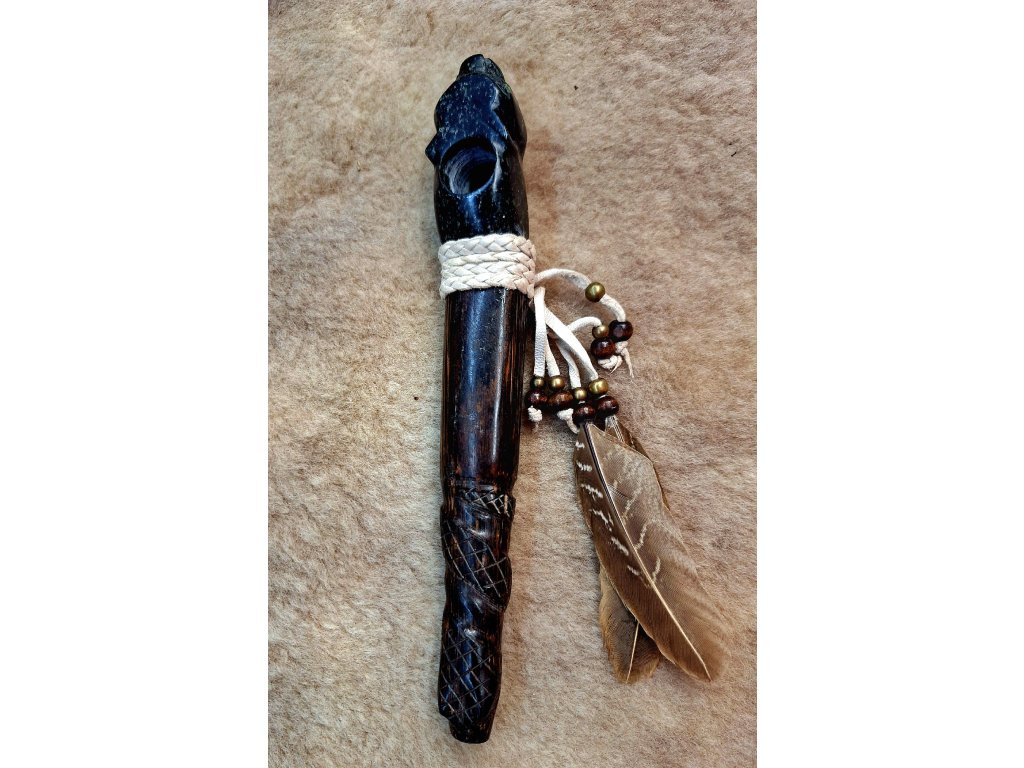 Šamanská rituálna fajka. Ručne vyrezávaná plne funkčná fajka.