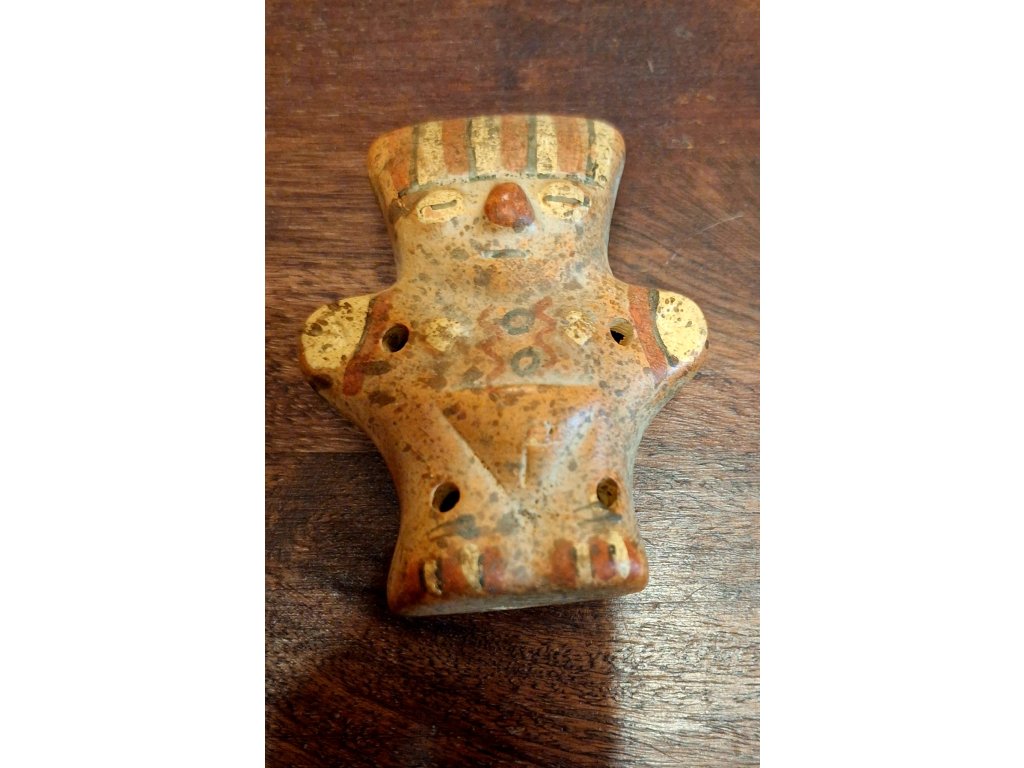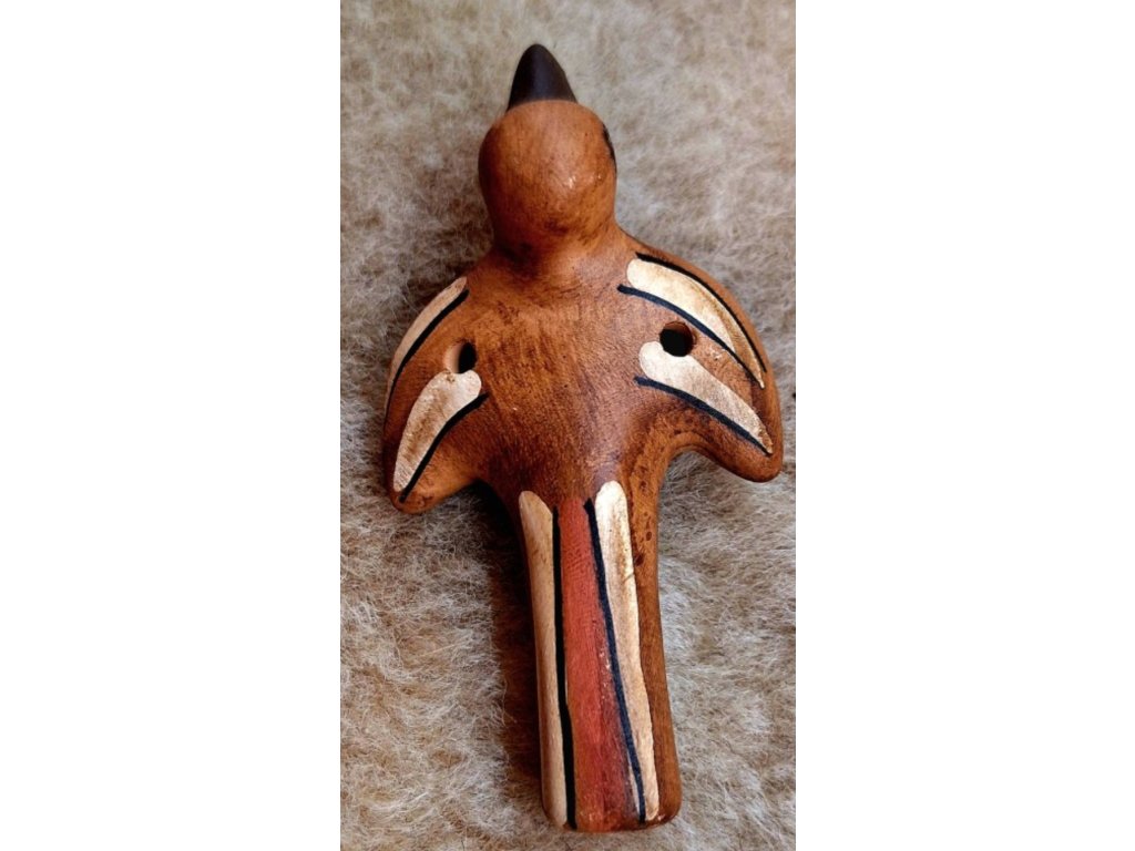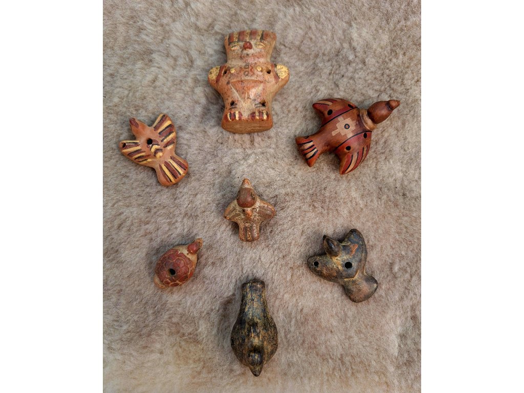Ocarina je intuitívny dychový nástroj vyrobený z hliny. Naše ocariny pochádzajú z Peru. Tieto ocarina majú vyšší tón a dajú sa s nimi imitovať spev vtákov a prepájú s tzv. hornými svetmi. Rozmery sú cca 1,8 x 7,5 cm- palec, 7,5x6 cm-kondor, 7,5x4 cm- vtáčik,7x6 cm - panák,