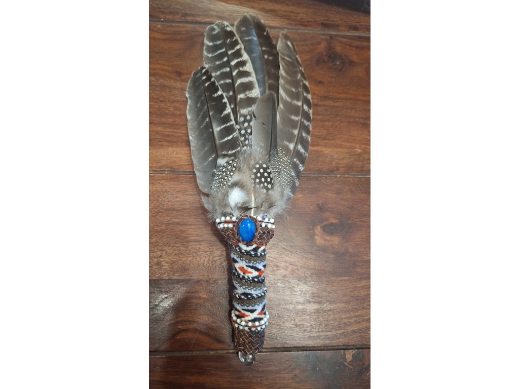 Pierkový vejár s krištálom na vydymovanie a očistu priestoru i ľudí. Slúži najmä na lepšie rozptýlenie dymu z vykurovacích zmesí, kadidiel, bylín alebo esenciálnych olejov.