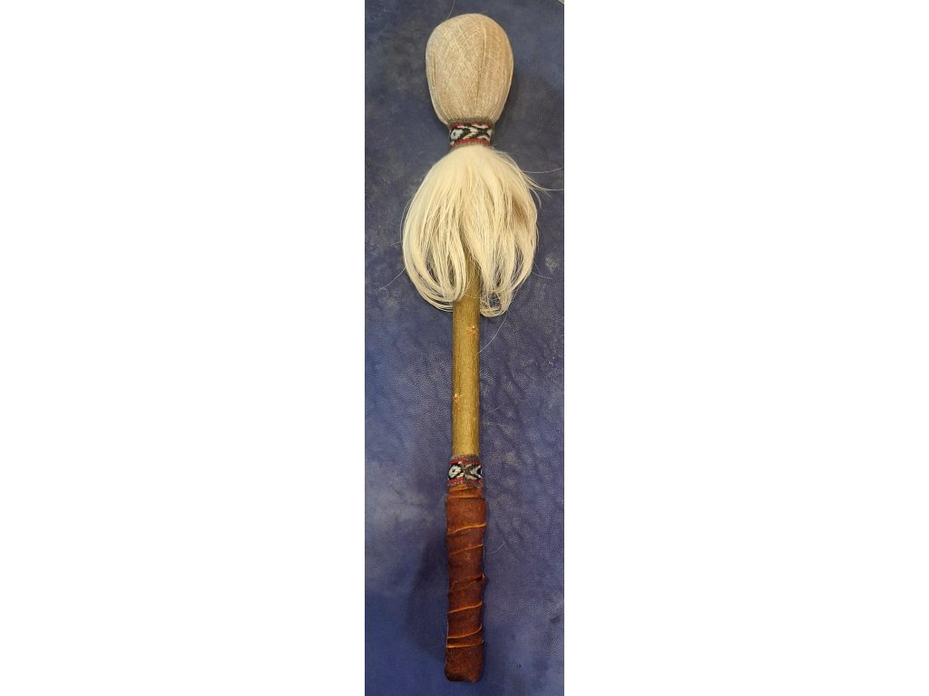 Ručne vyrobená, ručne zdobená šamanská palička k bubnu.